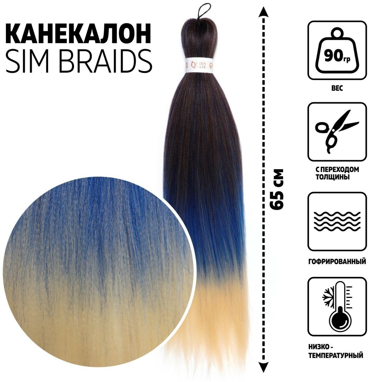 Queen fair SIM-BRAIDS Канекалон трёхцветный, гофрированный, 65 см, 90 гр, цвет русый/синий/голубой(#FR-35)
