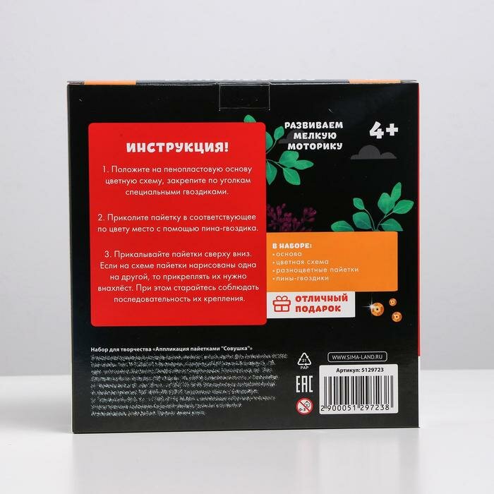 Купить Набор для творчества. Аппликация пайетками «Совушка»