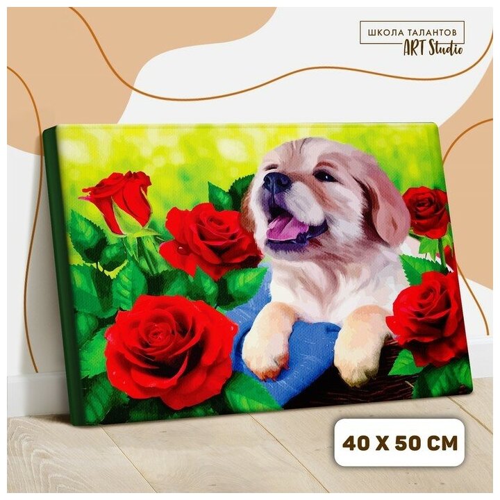 Купить Картина по номерам на холсте с подрамником "Щенок" 40×50 см