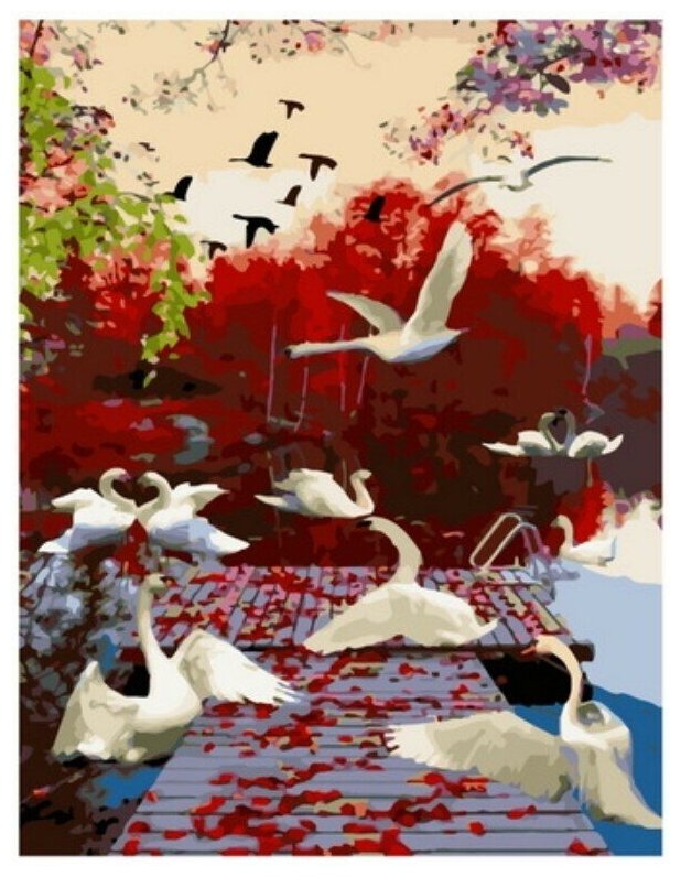 Картина по номерам на холсте и подрамнике 40x50 см / рисование по номерам / Лебеди на пруду интересное: