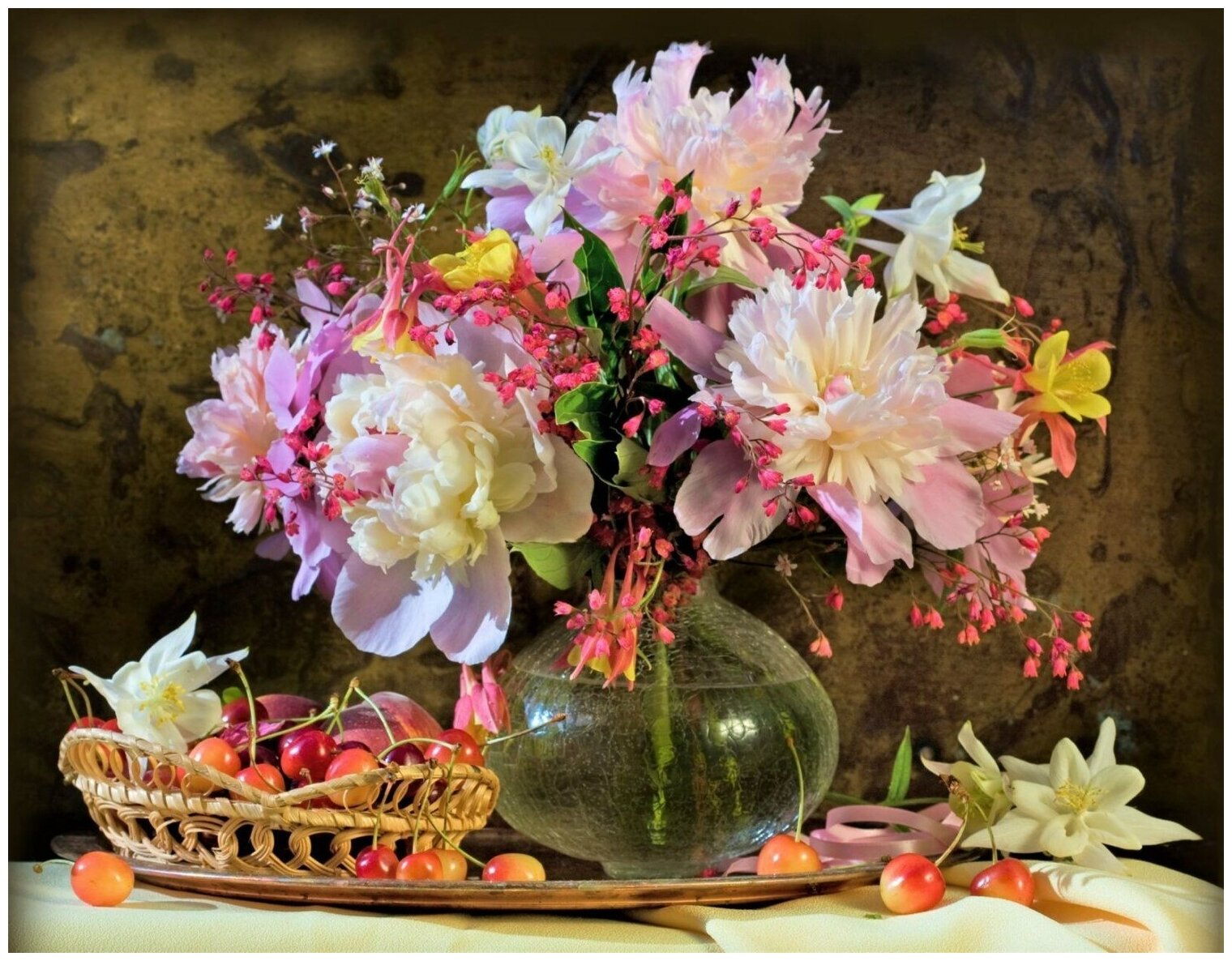 Купить Алмаз. мозаика (класс.) 30х40см, без подр., с част. заполн.(28цв.) Ваза С пионами (Арт. ACG057)