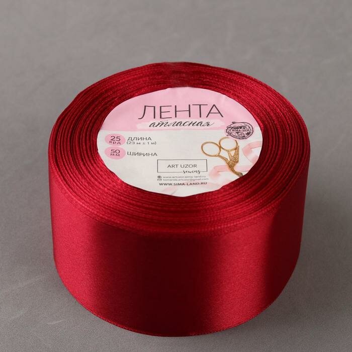 Арт Узор Лента атласная, 50 мм × 23 ± 1 м, цвет малиново-красный №120