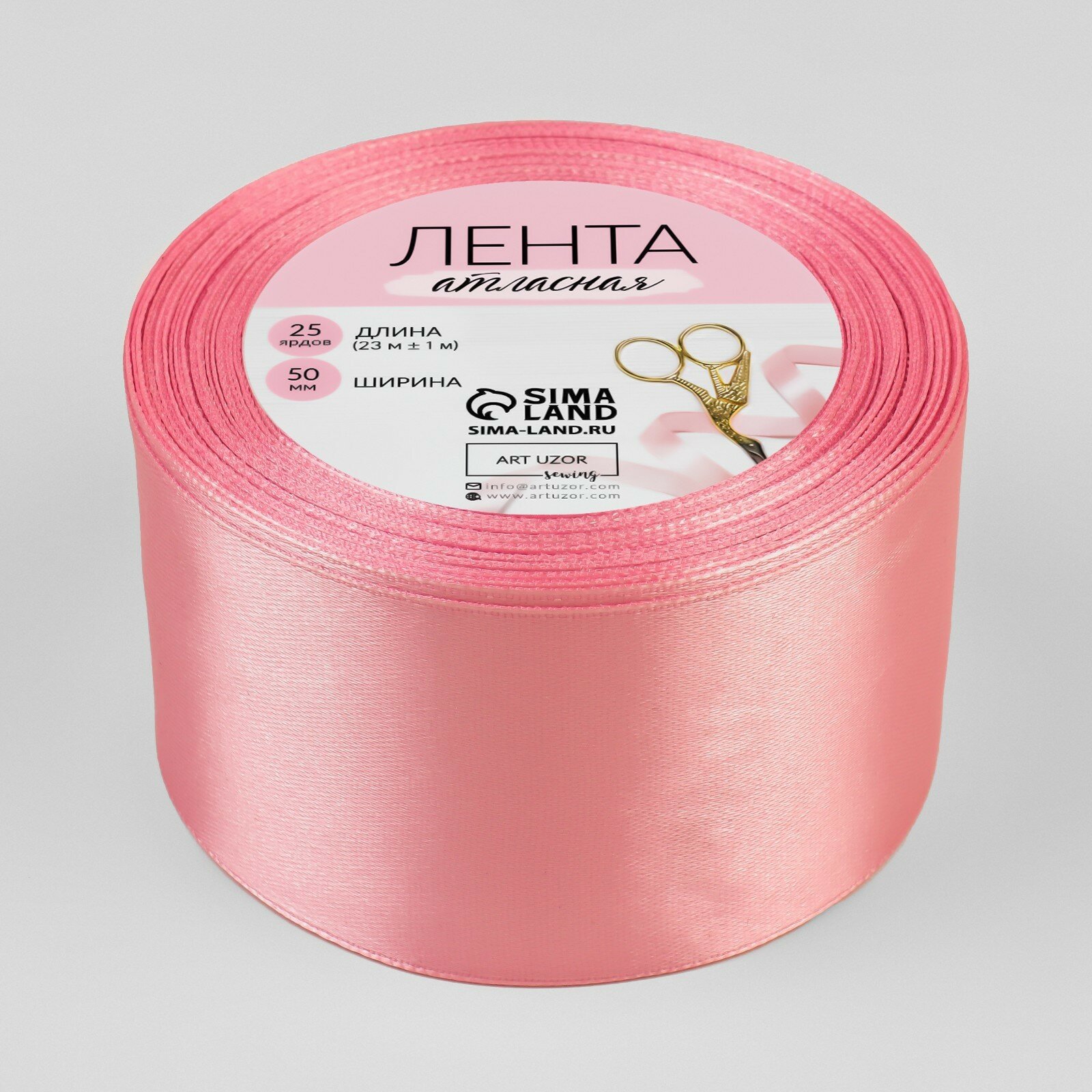 Арт Узор Лента атласная, 50 мм × 23 ± 1 м, цвет розовый №04