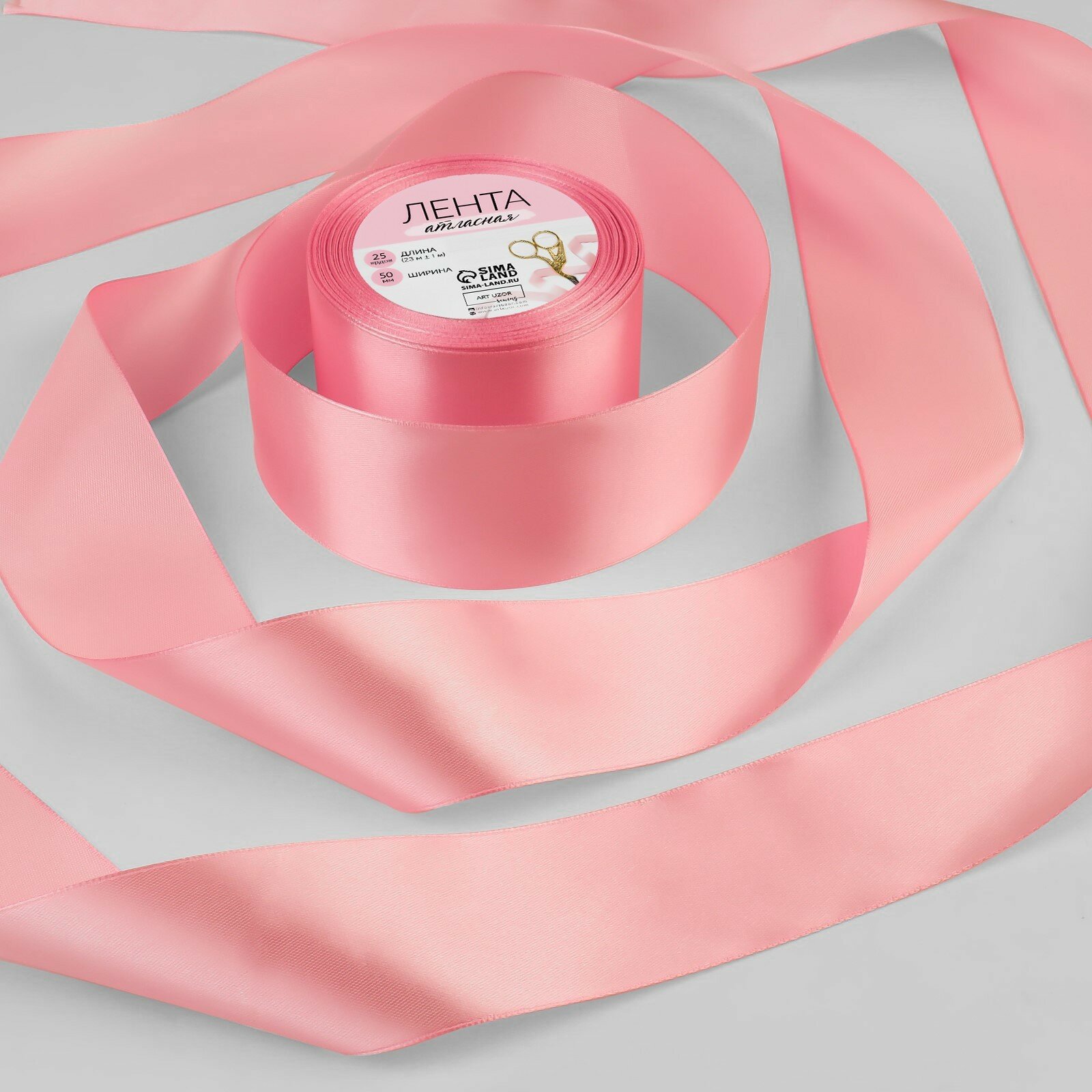 Арт Узор Лента атласная, 50 мм × 23 ± 1 м, цвет розовый №124