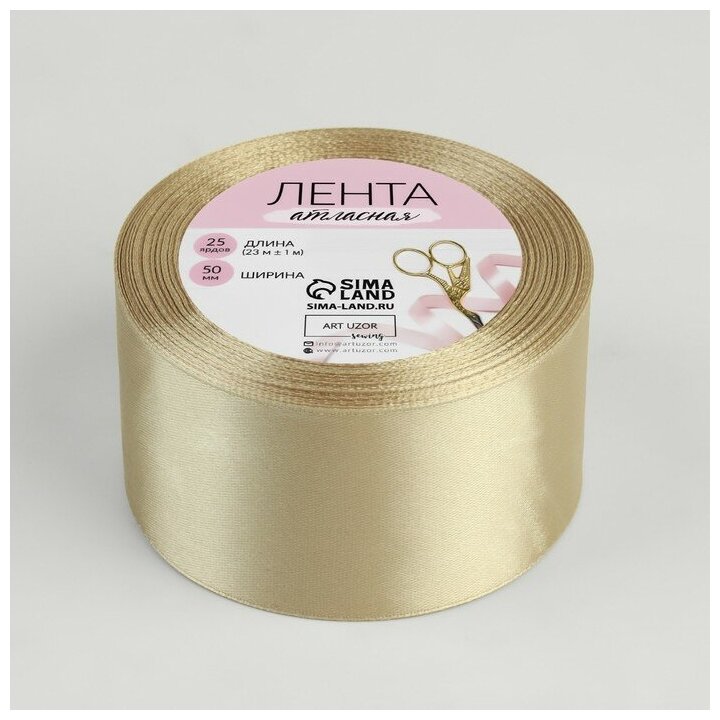 Арт Узор Лента атласная, 50 мм × 23 ± 1 м, цвет шампань №132