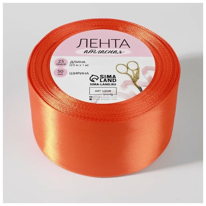 Лента атласная, 50 мм × 23 ± 1 м, цвет ярко-оранжевый №24, "Арт Узор", материал полиэстер