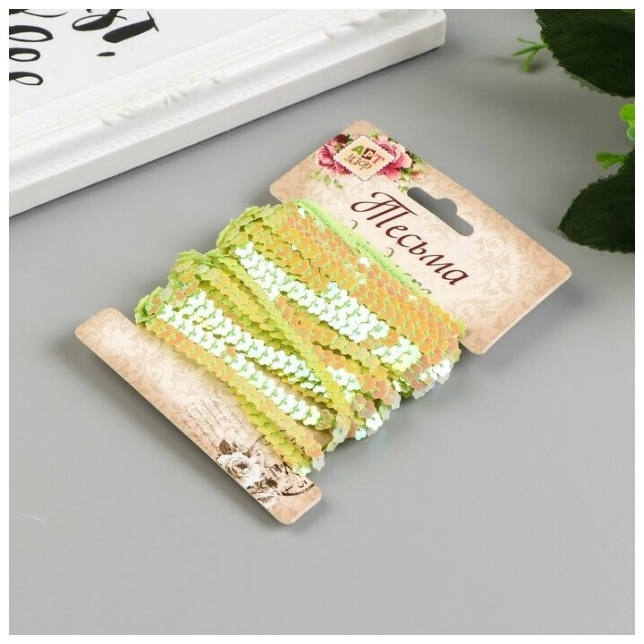 Нить из пайеток "Цветочки нежно-зелёные" намотка 5 метров d-0,6 см 4766978