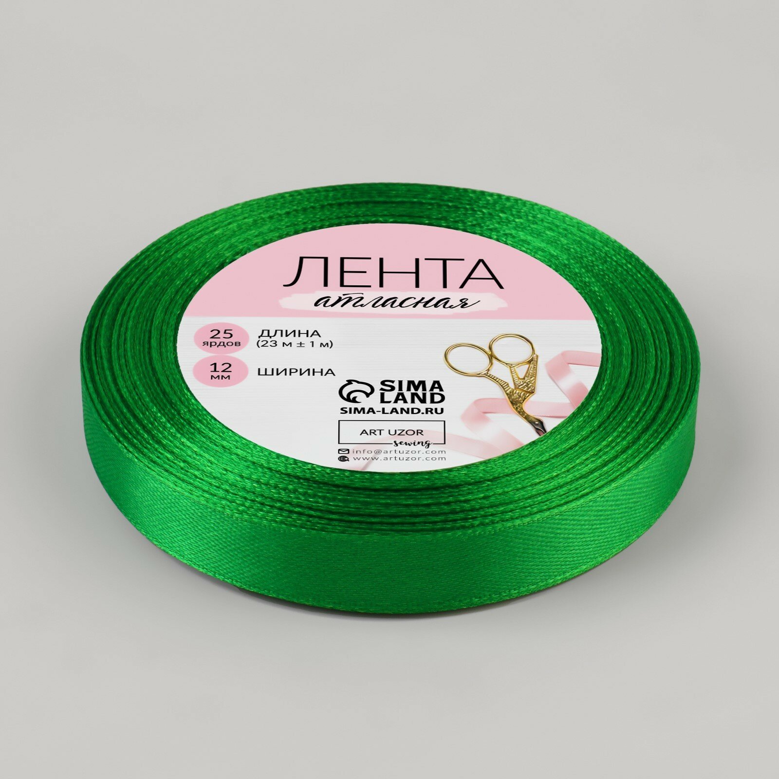Арт Узор Лента атласная, 12 мм × 23 ± 1 м, цвет зелёный №19