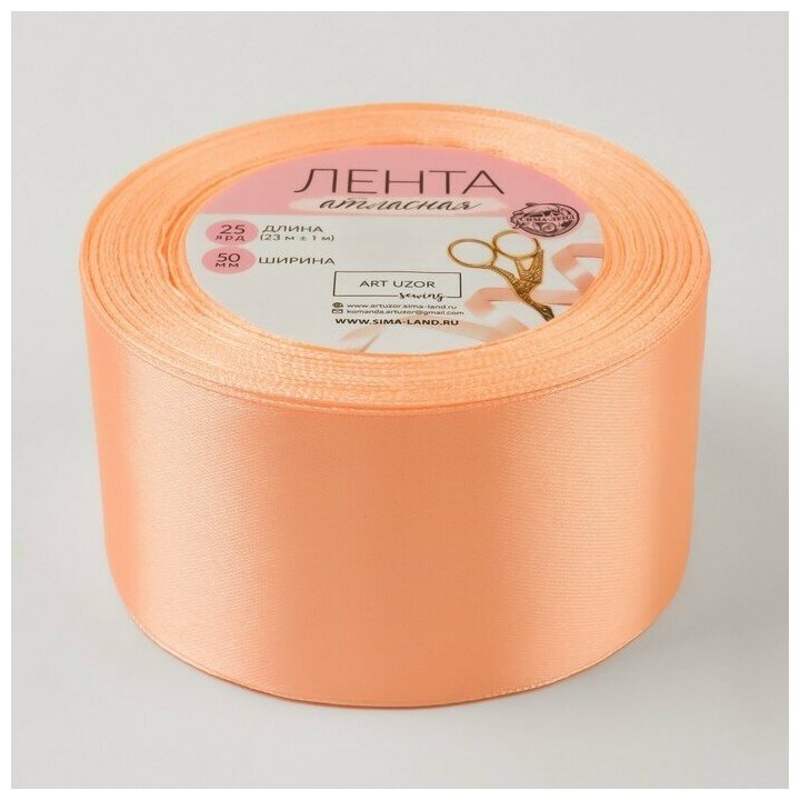 Арт Узор Лента атласная, 50 мм × 23 ± 1 м, цвет персиковый №127 интересное: