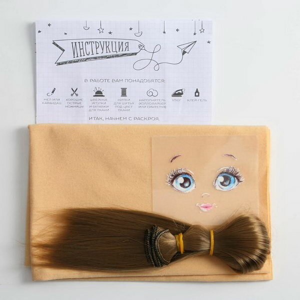 Купить Набор для шитья "Тело куклы с личиком и волосами", 10 x 27 см