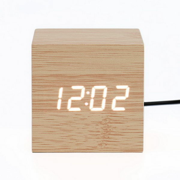Часы - будильник электронные "Цифра" настольные с термометром, деревянные, 6.5 см, ААА, USB