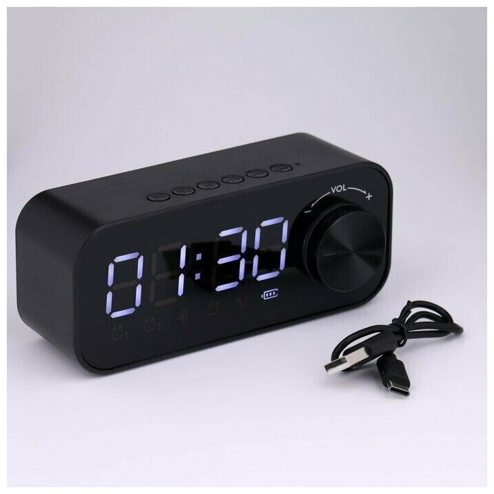 Часы - будильник электронные настольные: колонка, bluetooth, tf-карта, 14.2 х 6 см, USB
