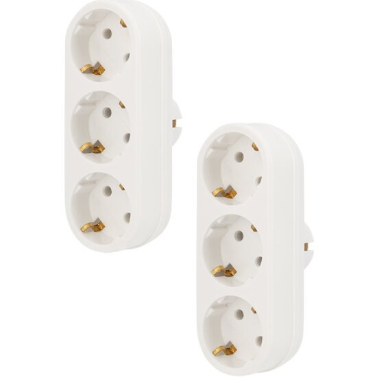 Тройник для розетки электрический с заземлением 16А, белый