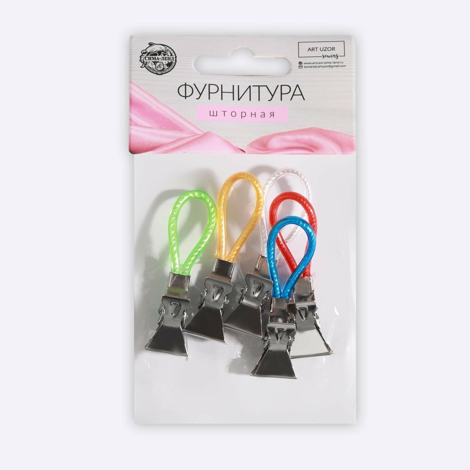 Зажим для штор, на петле, 50 × 15 мм, 5 шт, цвет разноцветный интересное: