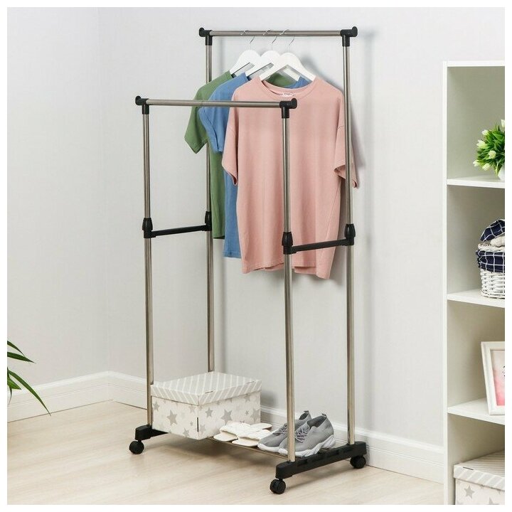 Стойка для одежды телескопическая Доляна, 2 перекладины, подставка для обуви, 80×43×90(160) см