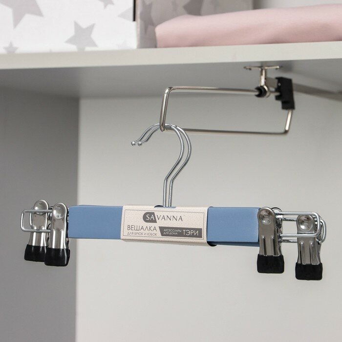 Вешалка деревянная для брюк и юбок с зажимами SAVANNA «Тэри», 28×11,5×2,8 см, цвет графитовый интересное:
