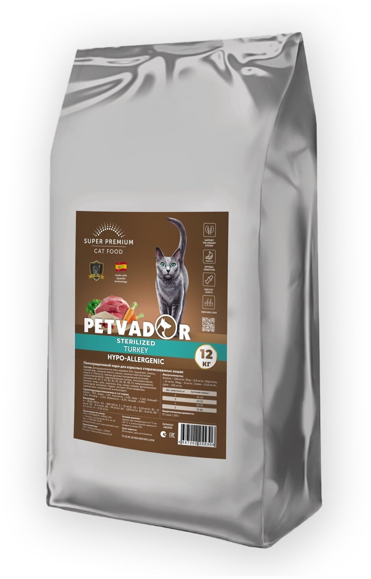 PETVADOR Полнорационный корм для стерилизованных кошек и кастрированных котов, 12 кг интересное: