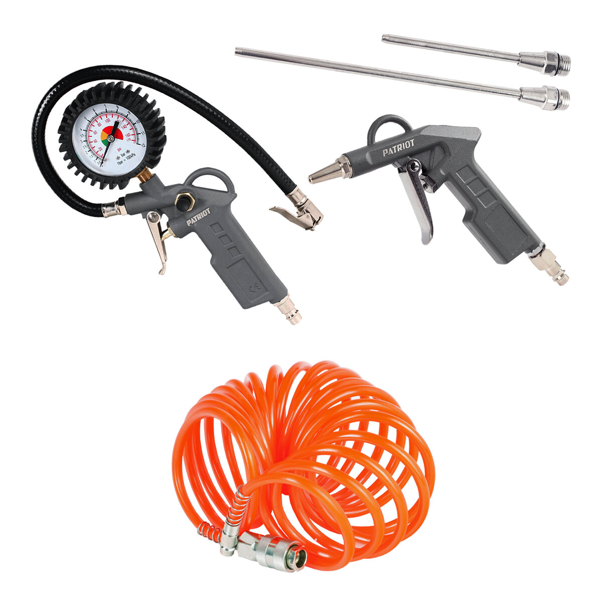 Набор пневмоинструмента KIT 3 C / пневмопистолет продувочный со шлангом / пистолет для накачки шин с манометром / насадка для накачки колес