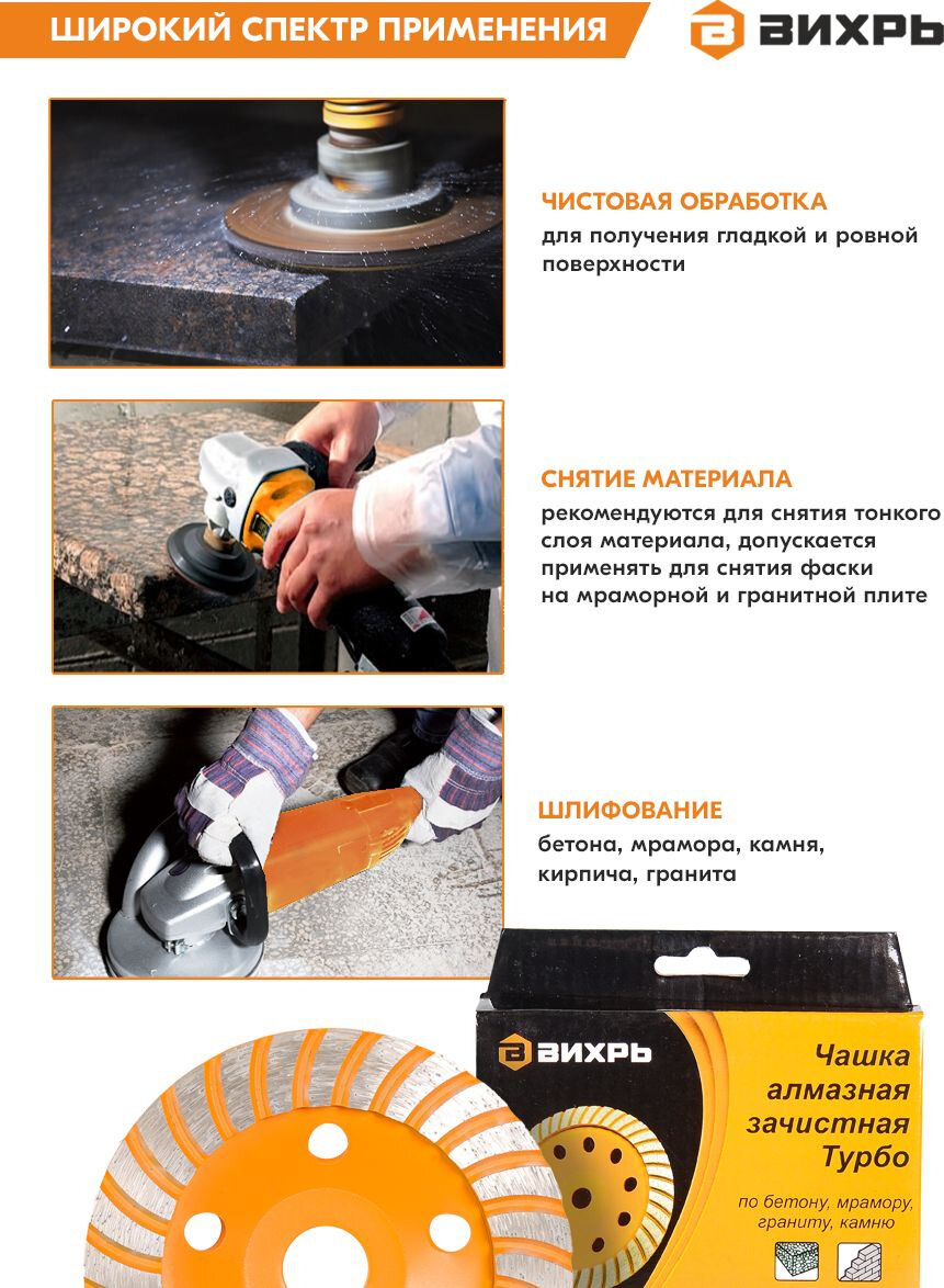 Чашка алмазная зачистная, 125 мм, Турбо Вихрь интересное: