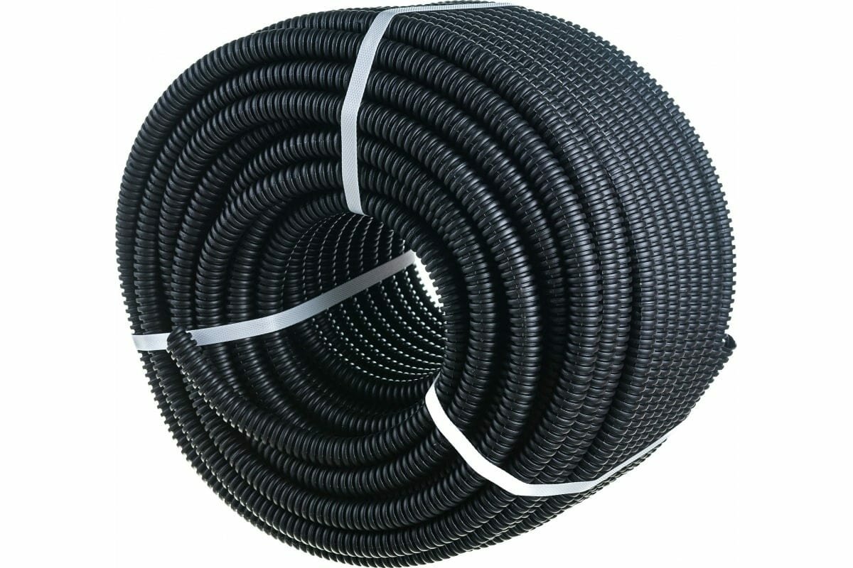 Гофра ПНД 16мм для кабеля труба гофрированная с протяжкой черная 100м