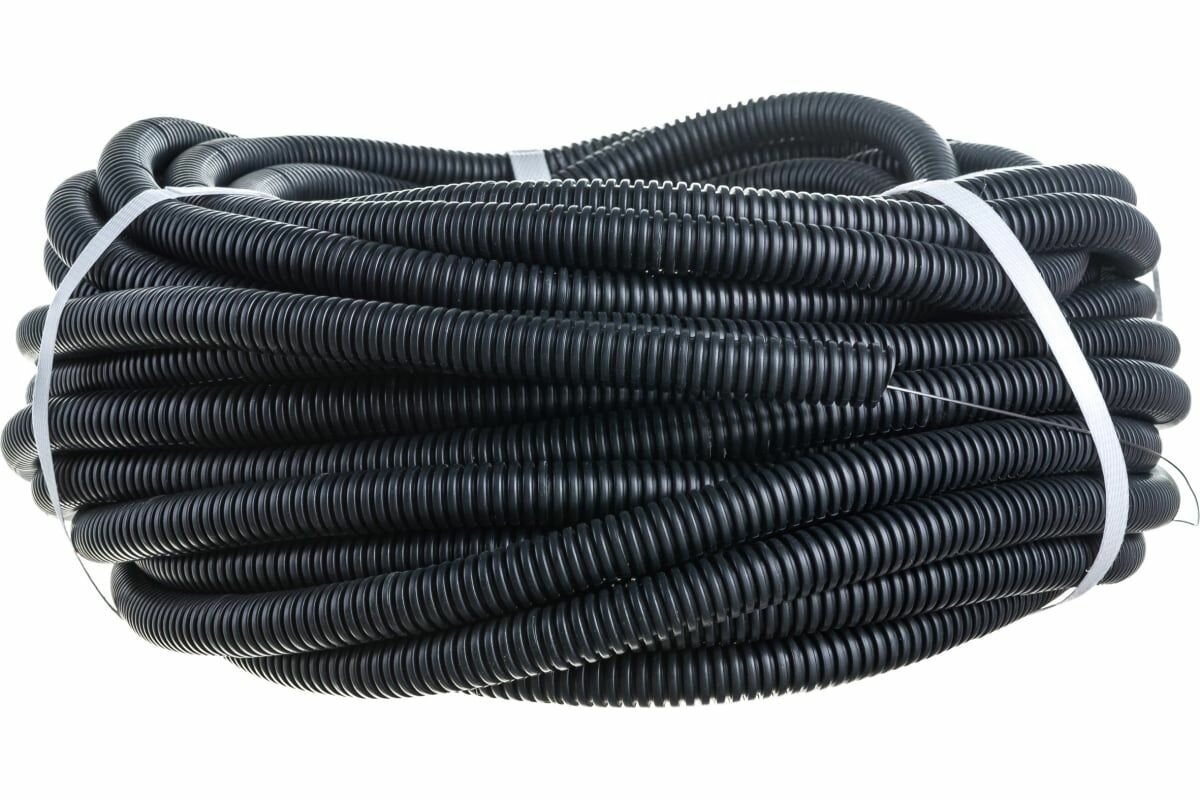 Купить Труба гофрированная Rexant из ПНД с зондом, черная, диам. 16 мм (бухта 25 м)