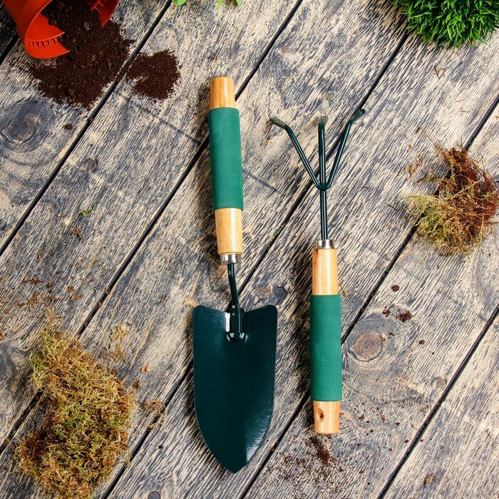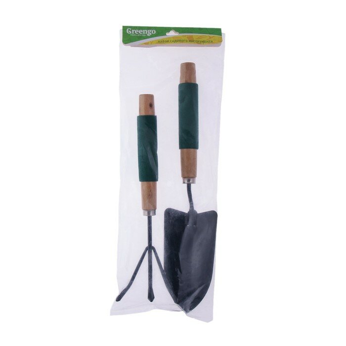 Купить Greengo Набор садового инструмента, 2 предмета: совок, рыхлитель, длина 36 см, деревянные ручки с поролоном