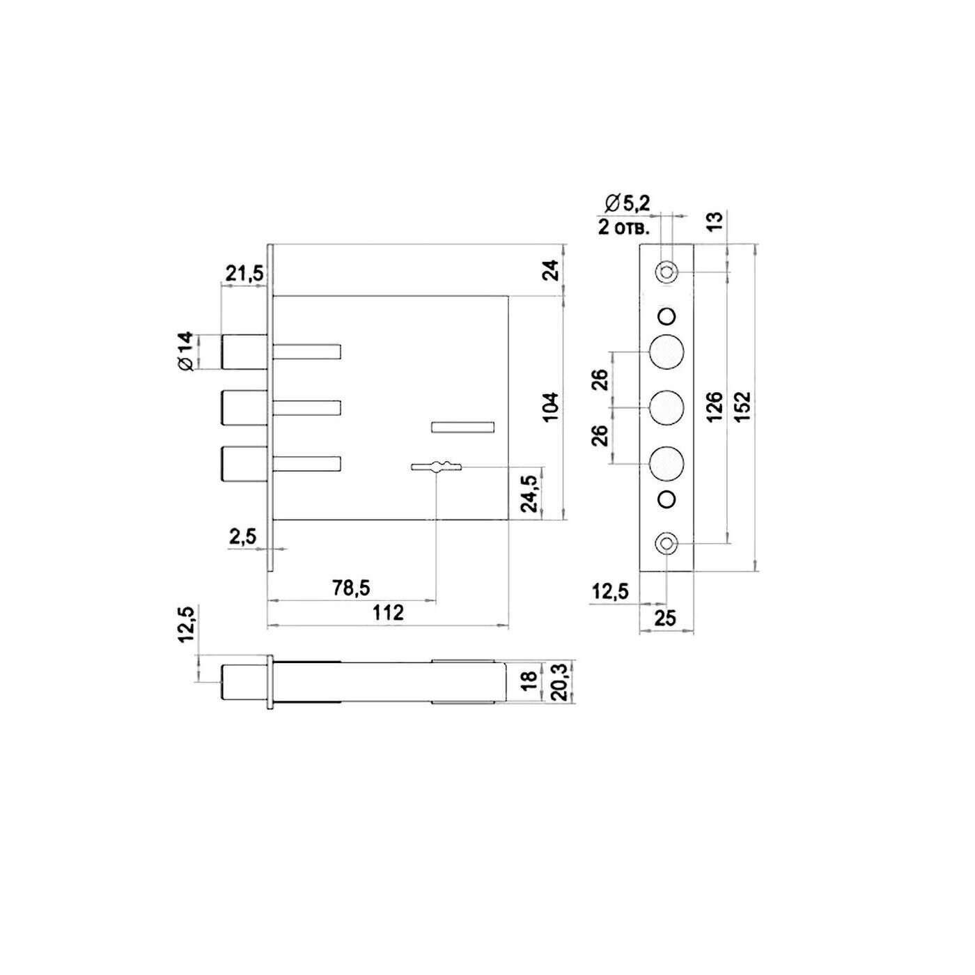 Замок Врезной Кремень Сувальдный 1.04.02 3СТЕРЖ 14ММ Эльбор 0005
