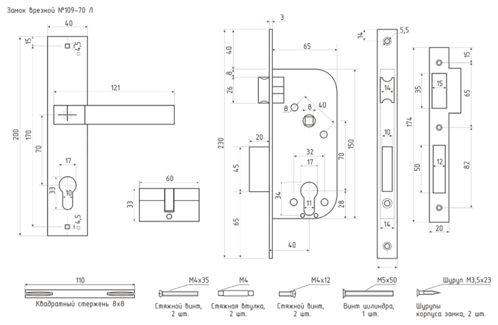 Замок врезной цилиндровый Нора-М 109-70 Л комплект с ручками - Старая бронза интересное: