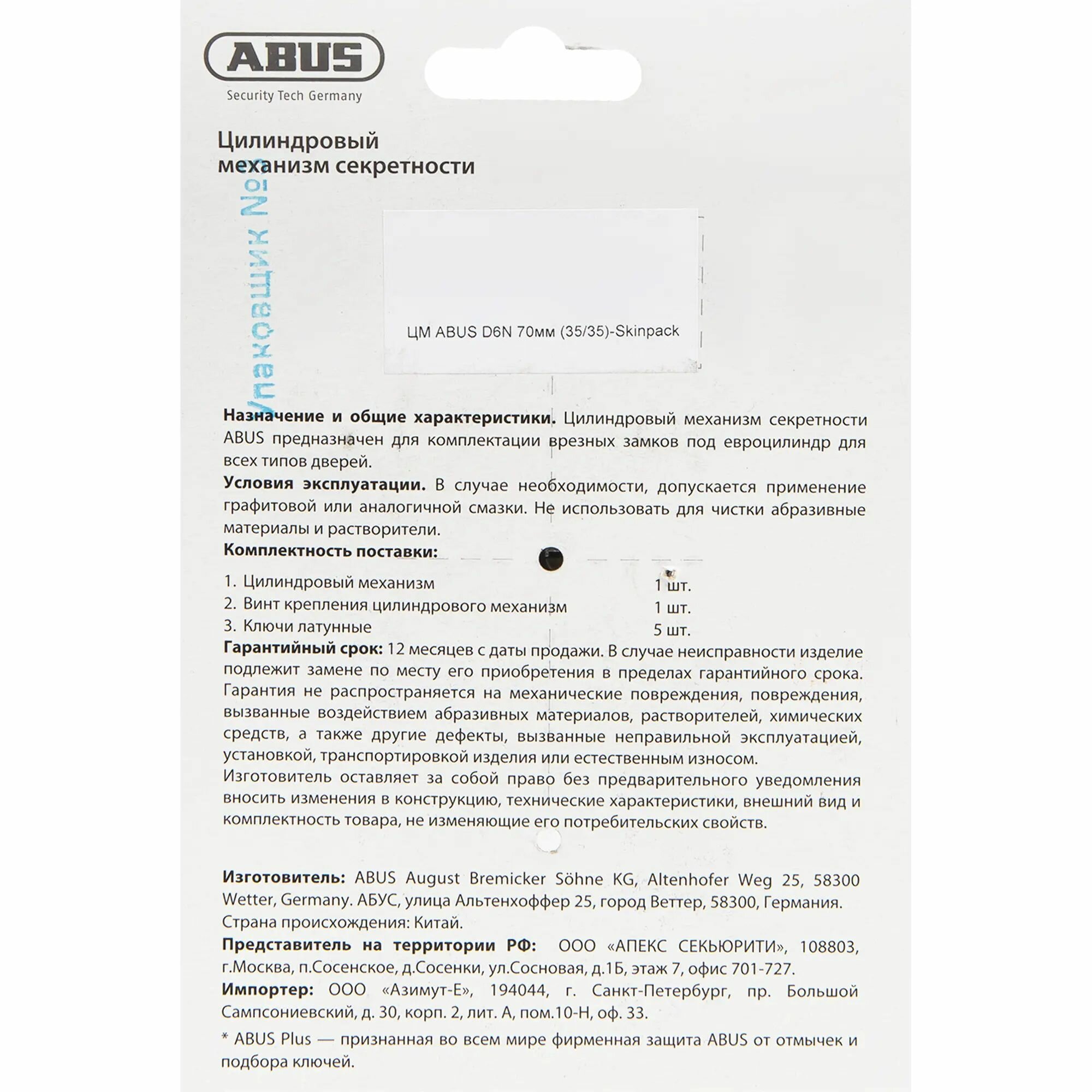 Цилиндр Abus D6N 35/35, 35x35 мм, ключ/ключ, цвет никель интересное: