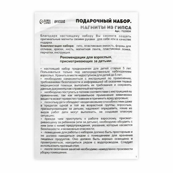 Школа талантов Подарочный набор «Магниты из гипса своими руками» интересное: