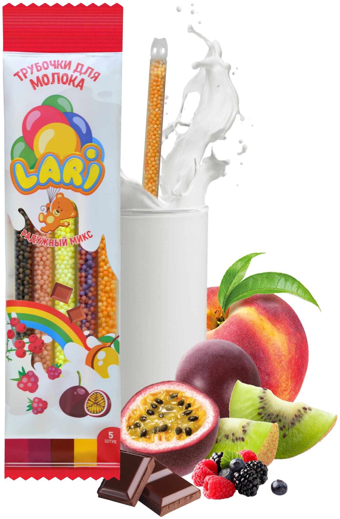 Купить Трубочки для молока LARI ягодный микс/ экзотик/ ириска барбариска/ радужный микс, 4 упаковки по 5 трубочек