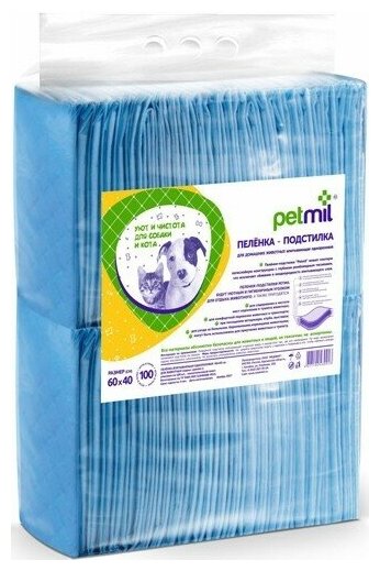 Петмил пеленки впитывающие 60*40 100шт интересное: