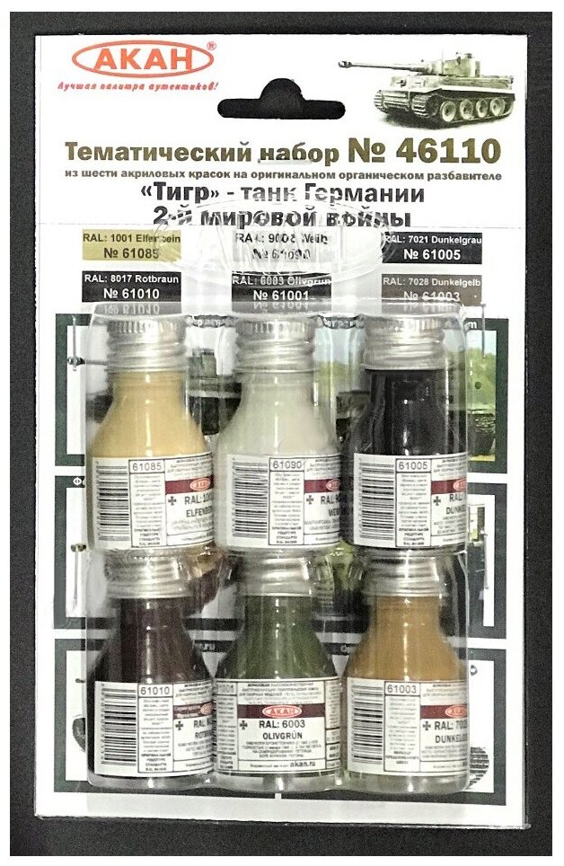 46110 акан Набор красок. Тигр - танк Германии 2-й мировой войны. (6 шт.) интересное: