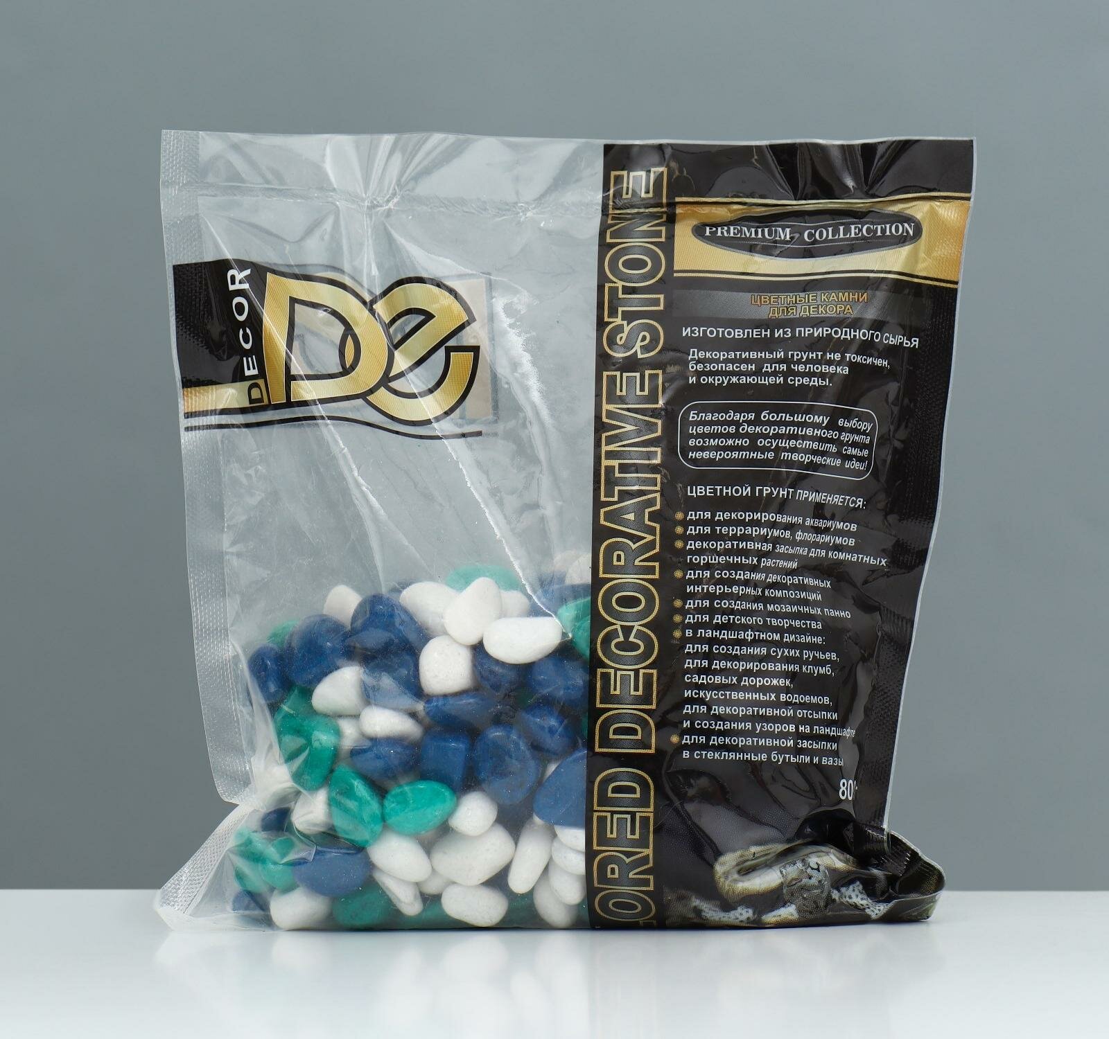 Купить DECOR DE Грунт для аквариума "Галька цветная, белый-темн. синий-изумрудный" 800г фр 8-12 мм