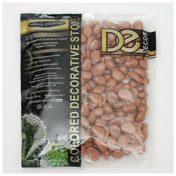 Грунт DECOR DE Цветная галька, коричневая, фракция 8-12 мм, 8-12 мм, 0.8 кг