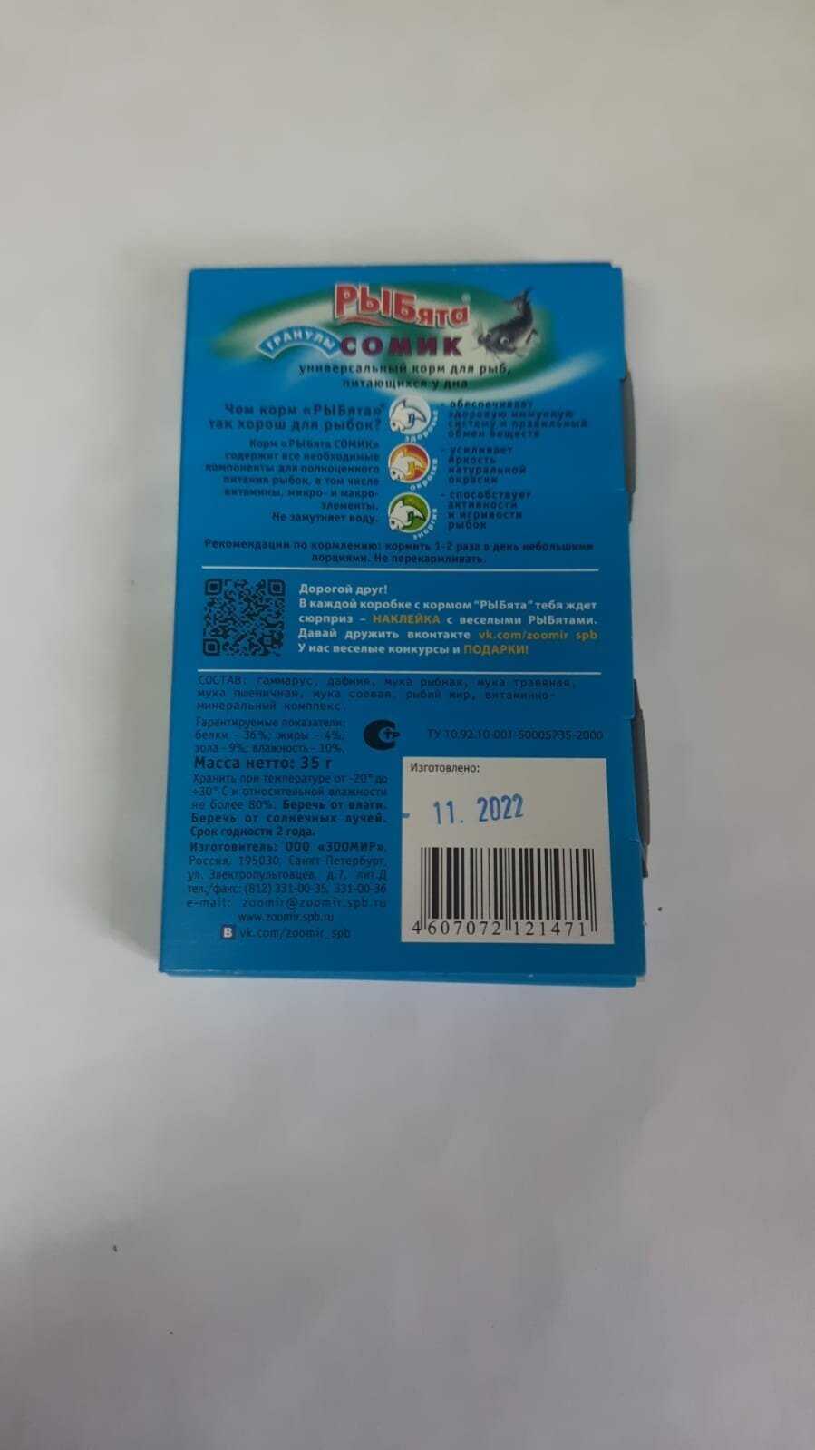 Ниже Вы можете прочитать отзывы на РЫБята Корм "РЫБята сомик" (+ сюрприз) для донных рыб, гранулы, 35 г, ознакомится с подробными характеристиками, посмотреть интересные обзоры и фотографии на РЫБята Корм "РЫБята сомик" (+ сюрприз) для донных рыб, гранулы, 35 г.