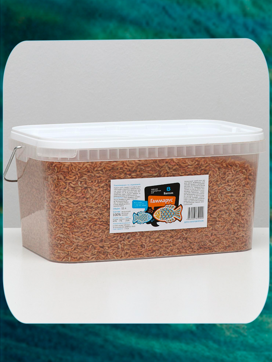 Barrom Корм для рыб Гаммарус тушка, 2 л, ведро / Сухой корм для аквариумных рыб, черепах, лягушек, улиток и декоративных птиц