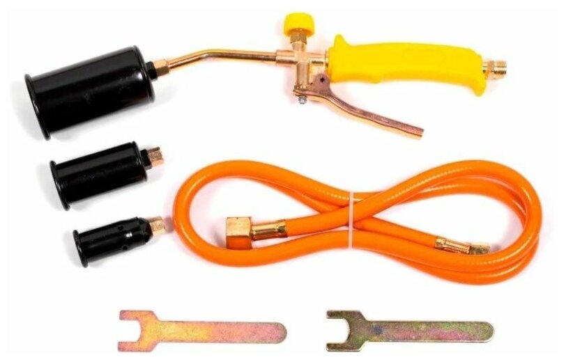 | Плюсы: | 3 сменные сопла разных диаметров. Постоянный вентиль подачи газа и клапанного типа. |