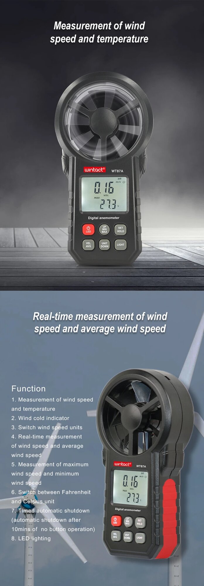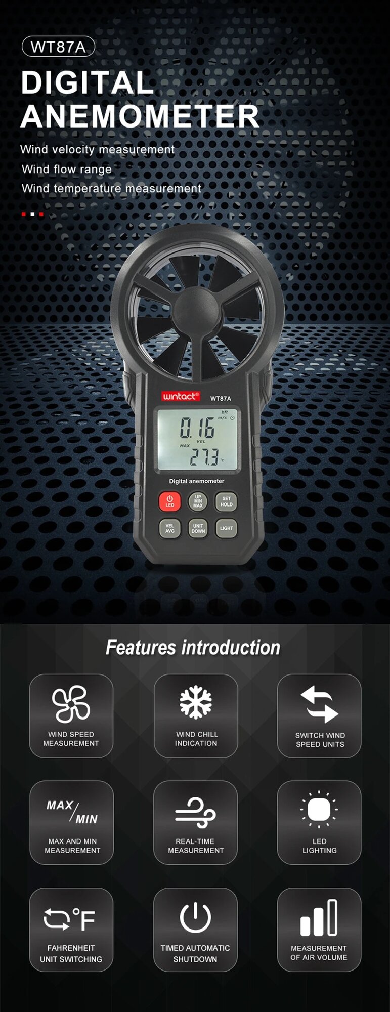 Анемометр Wintact 87A интересное: