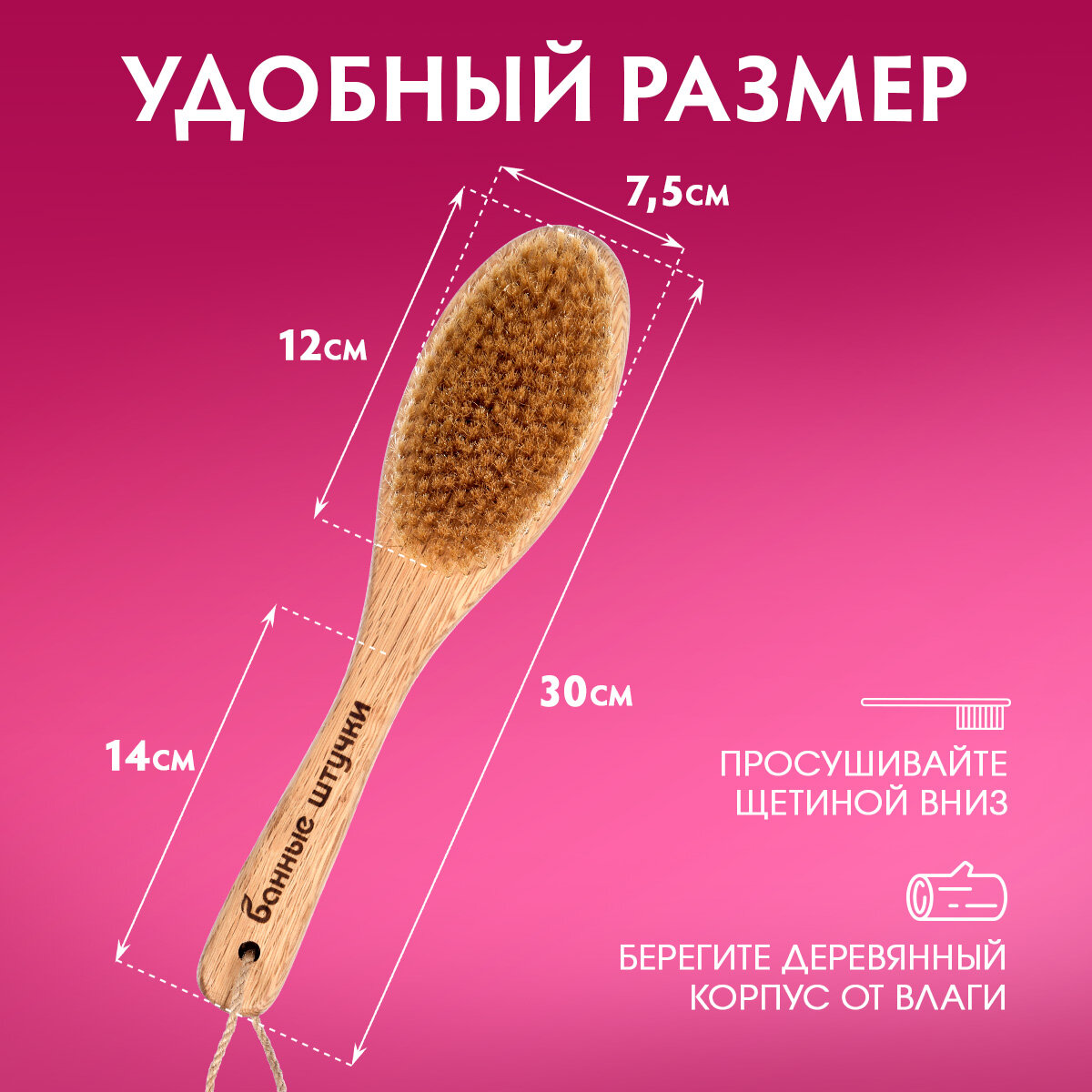 СохранитьЩетка деревянная "Антицеллюлит" банная массажная 30 см, с натуральной щетиной "Банные штучки" интересное: