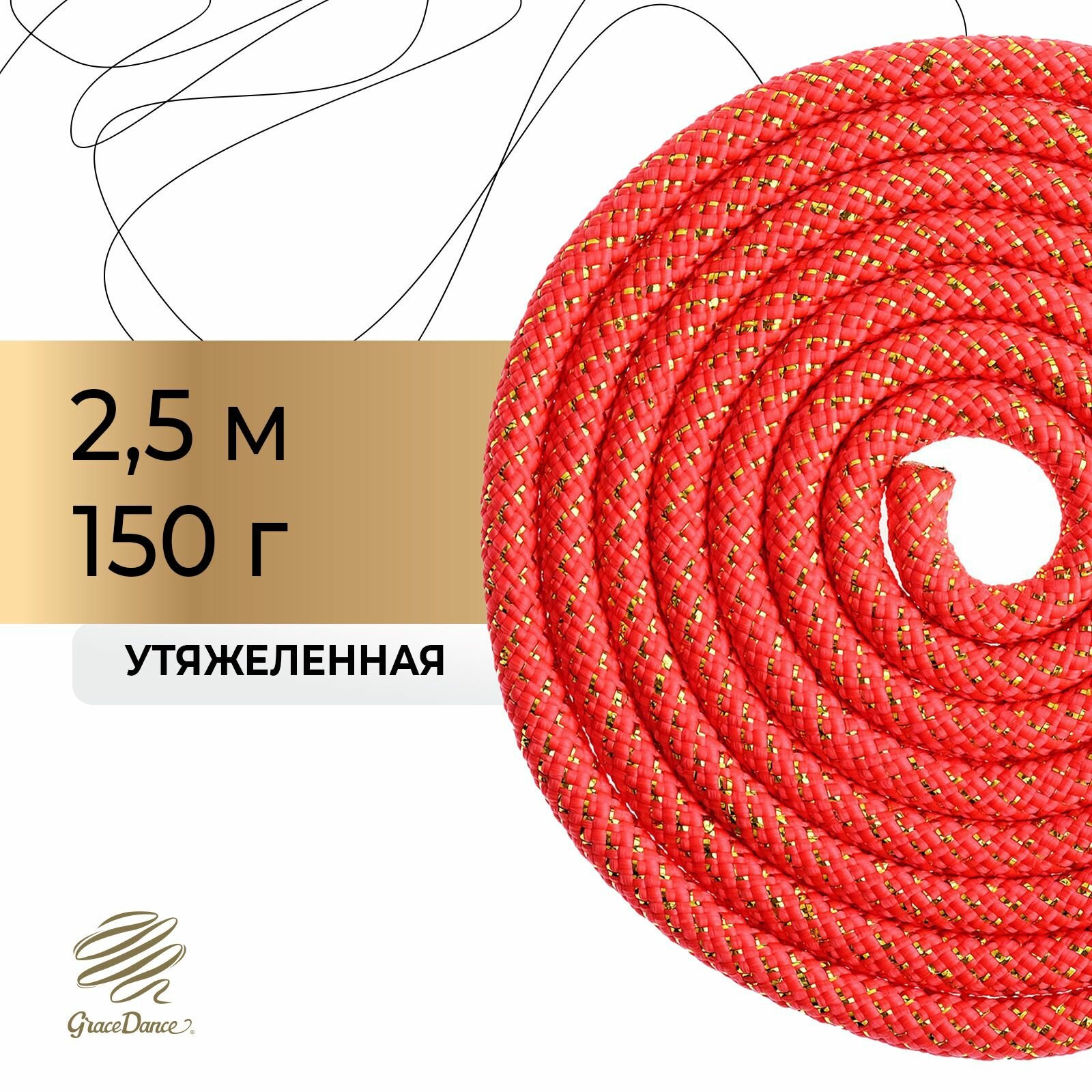 Grace Dance Скакалка гимнастическая утяжелённая с люрексом, 3 м, 180 г, цвет красный/золото