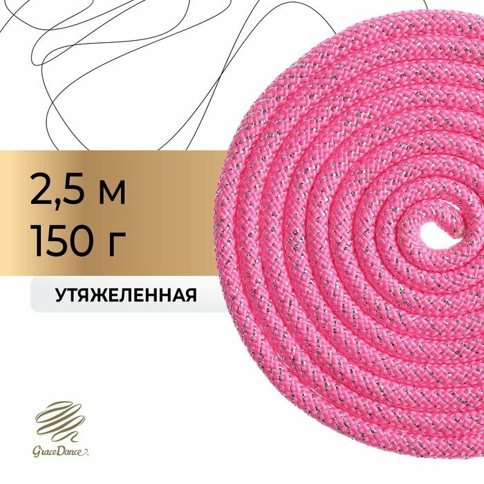 Скакалка гимнастическая утяжелённая, 2,5 м, цвет неон розовый/серебро люрекс Grace Dance 4483707 .