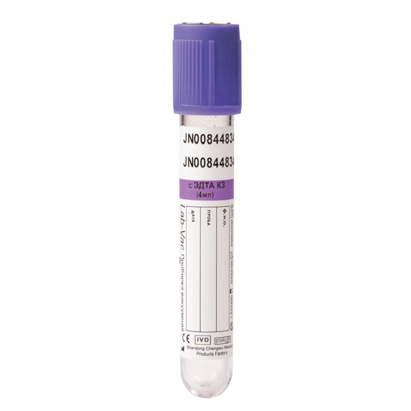 Вакуумные пробирки Lab-Vac с К3 эдта, фиолетовые, 4 мл, 13х75 мм (уп. 100шт) 143041375 интересное: