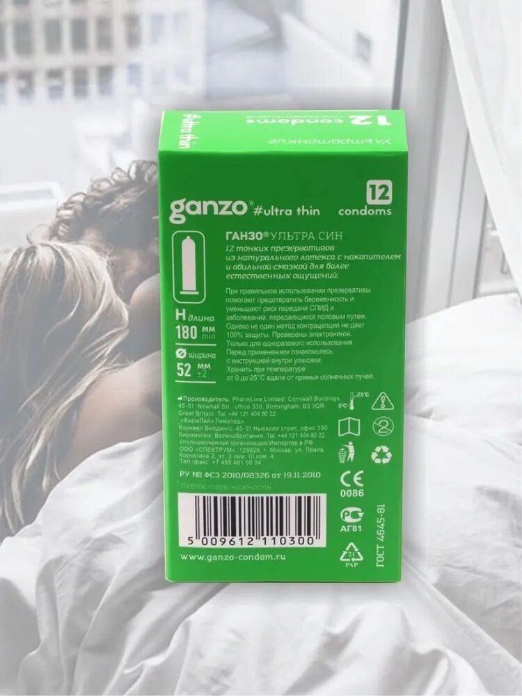 Ganzo Ultra thin презервативы ультратонкие, 12 шт.