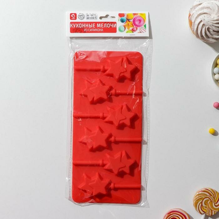 Купить Доляна Форма для леденцов Доляна «Звёзды», 9,5×24 см, 6 ячеек, палочки в комплекте, цвет микс
