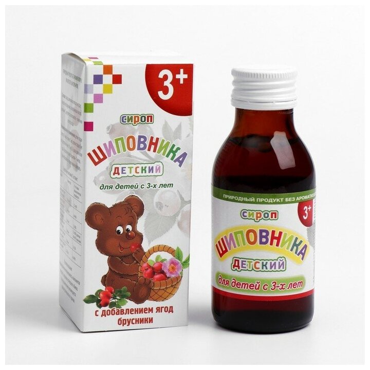 Сироп шиповника для детей с 3-х лет, при простуде и гриппе, ягоды брусники, 100 мл