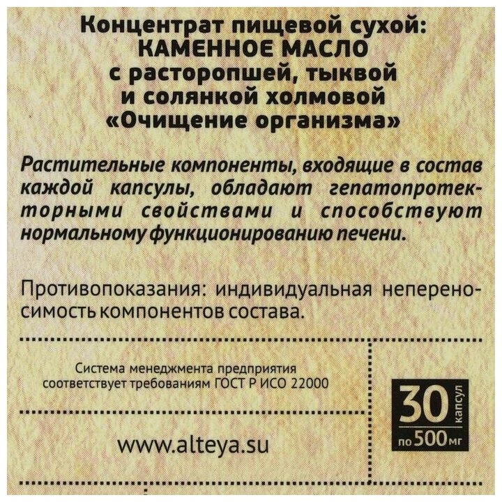 Каменное масло «Очищение организма» с расторопшей, тыквой и солянкой холмовой, 30 капсул по 500 мг интересное: