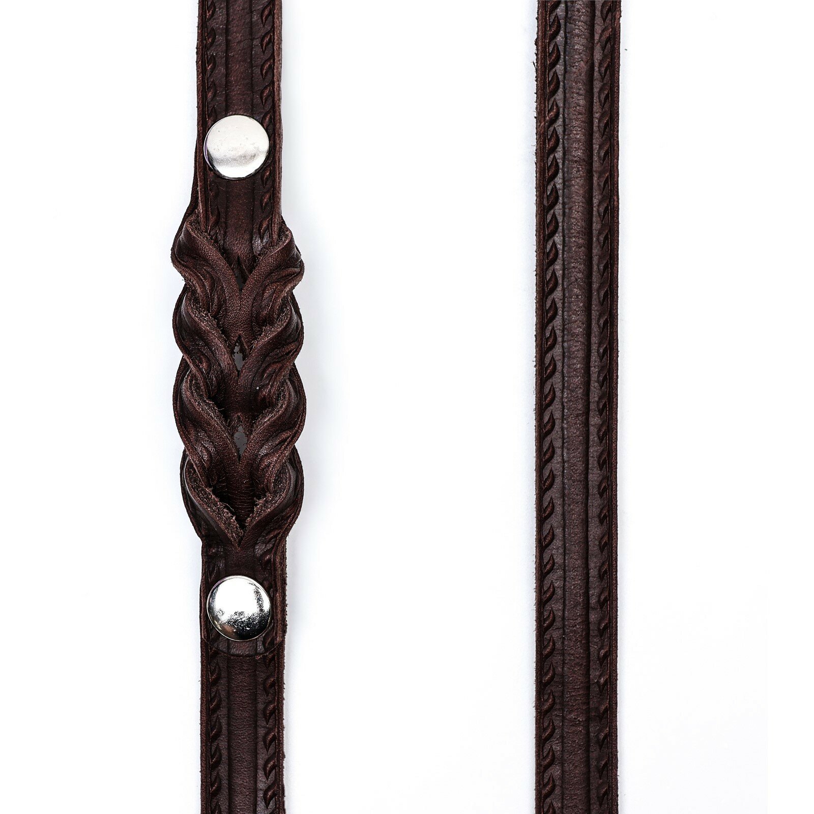 Купить Поводок кожаный однослойный тиснёный, удлиненный, 2 м*1,6 см коричневый