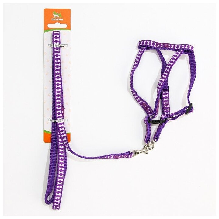 Шлейка для собак Пижон прошитая, 23-35 см, "Косточки", 1 см, с поводком 120 см, розовый интересное: