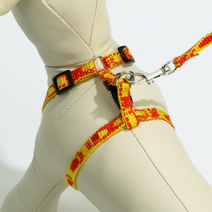 Купить Пижон Комплект "Большая лапа", ширина 1 см, поводок 120 см, шлейка 25-36 см, оранжево-жёлтый